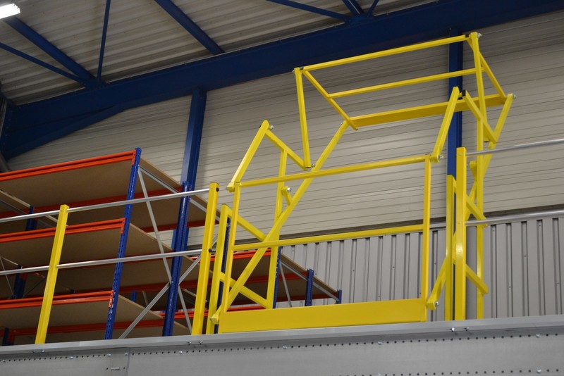 La barrière écluse est un système de sécurité visant à assurer la continuité du garde corps lors des opérations de transfert de marchandises entre 2 niveaux. Le personnel dispose ainsi en tout temps d’un garde corps quand une charge doit être montée sur une plateforme de stockage. A l’inverse, la barrière écluse permet aussi de sécuriser les employés quand une charge doit être descendue de la plateforme pour être amené au niveau de l’entrepôt.